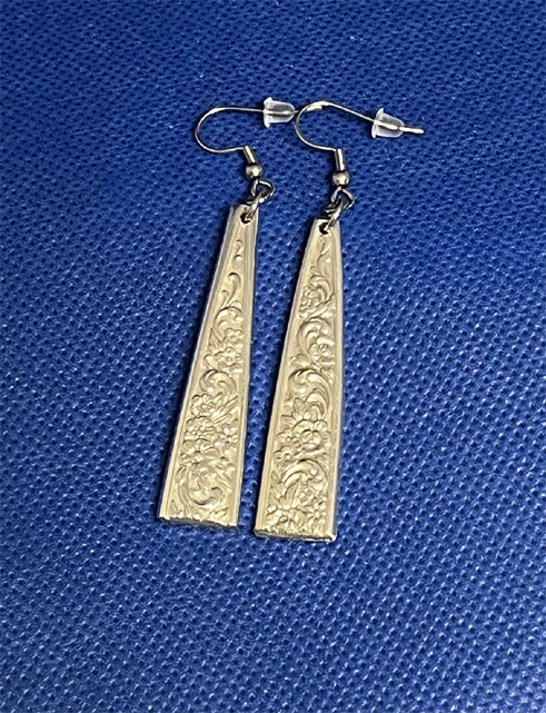 Earrings are handcrafted from vintage flatware, silver platters or from Embossed silver.